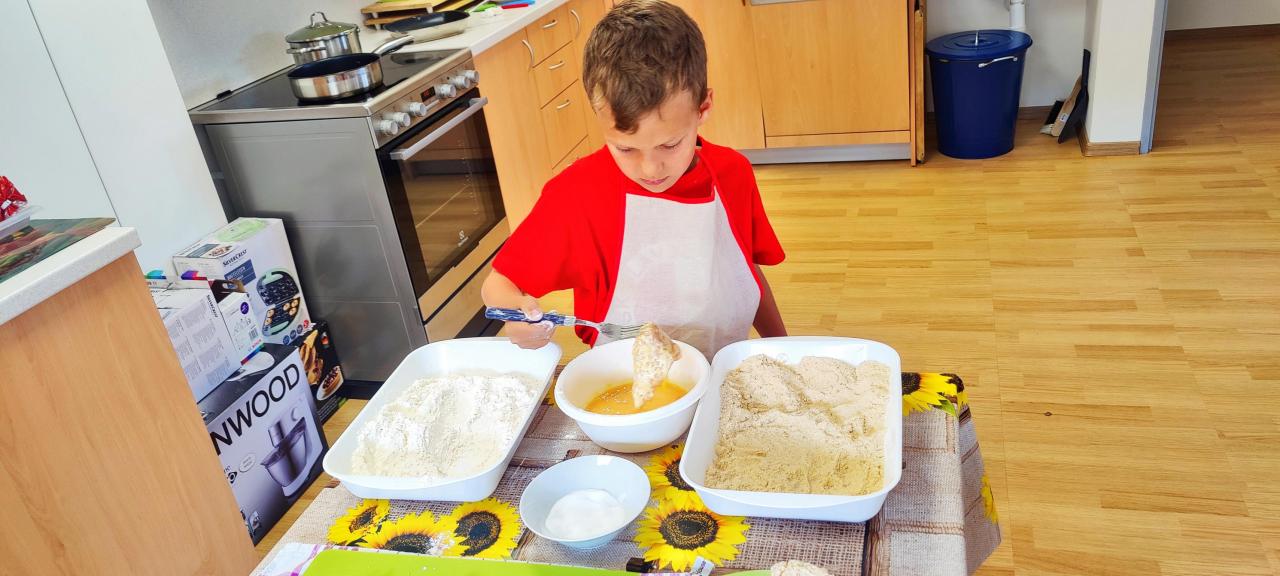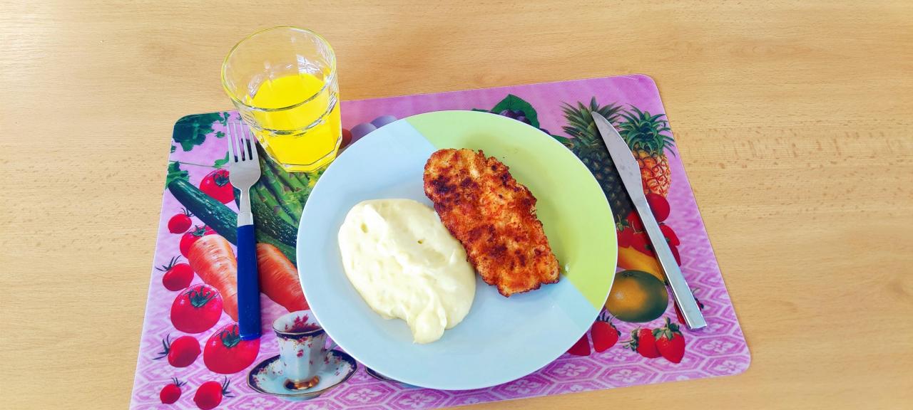 Kuřecí řízek s bramborovou kaší, zmrzlina